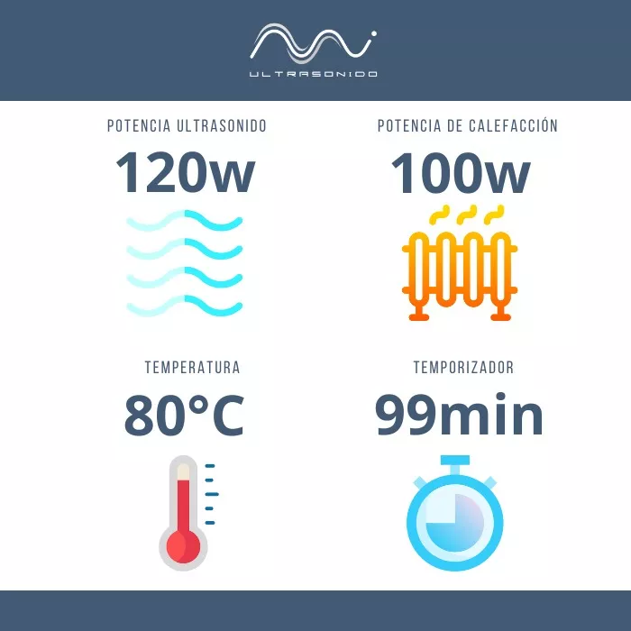 Tina ultrasonido de 3.2 litros de capacidad con una potencia máxima de 120w